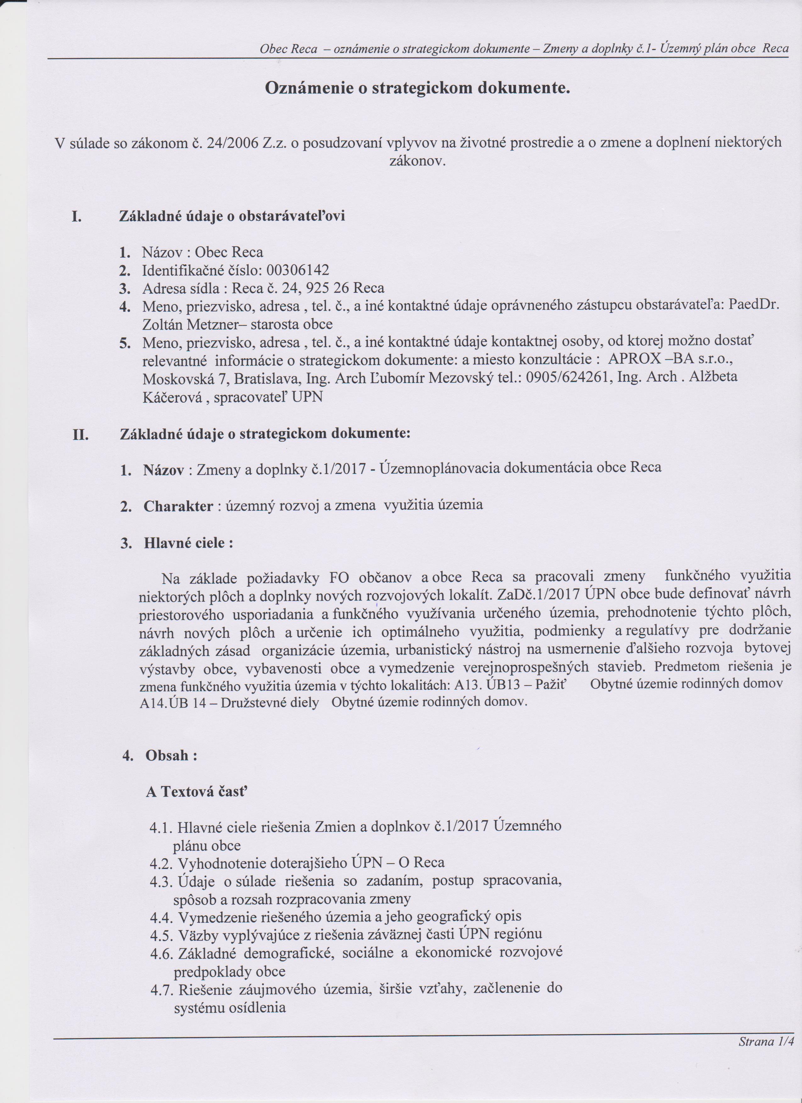 Informácia - Zmeny c. 1 Reca.pdf (z dňa 31.10.2017, veľkosť 199 kB, Informácia o oznámení - Oznámenie /S/, zobraz)