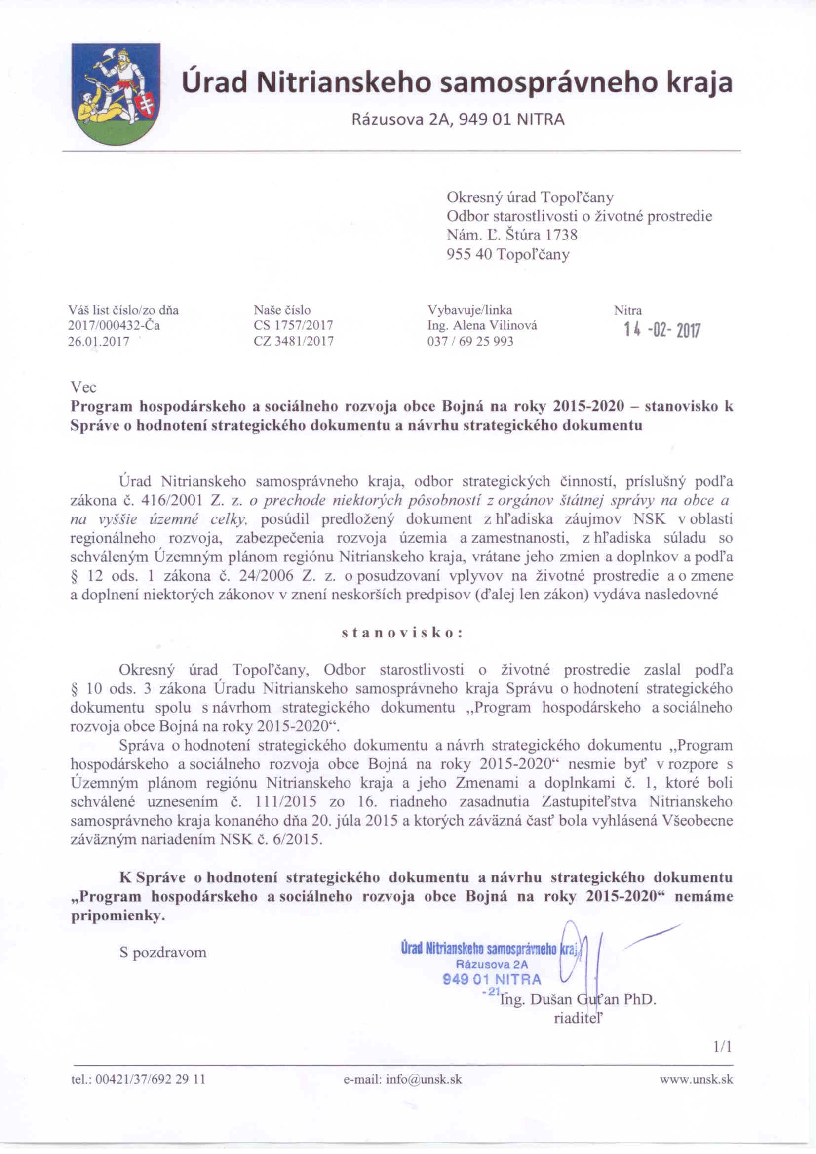 vyjadrenie k PHSR Bojná opak.pdf (z dňa 21.2.2017, veľkosť 469 kB, Stanoviská dotknutých orgánov - Správa /S/, zobraz)